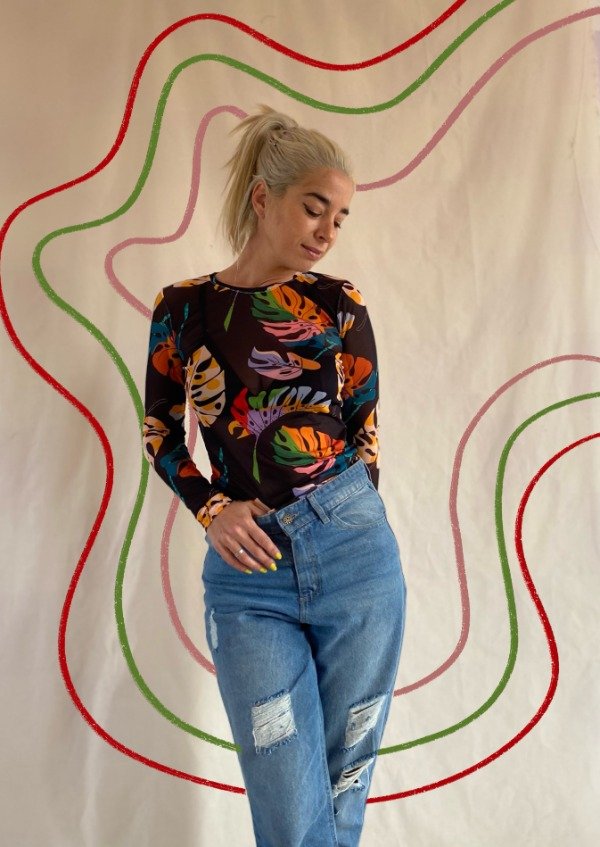 Polera / Remera manga larga de microtul estampado – Sur