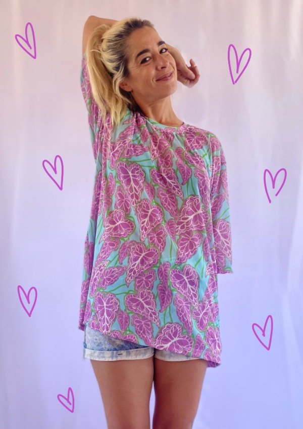 Está confeccionada en microtul 100% poliéster de altísima calidad, con nuestras estampas originales (sí, diseñadas por nosotras en Sur). La tela es suave, liviana y bien fresca, ideal para los días de calor o para sumar una capa liviana sin perder comodidad.