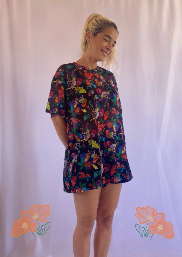 Está confeccionada en microtul 100% poliéster de altísima calidad, con nuestras estampas originales (sí, diseñadas por nosotras en Sur). La tela es suave, liviana y bien fresca, ideal para los días de calor o para sumar una capa liviana sin perder comodidad.