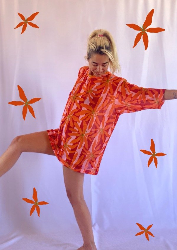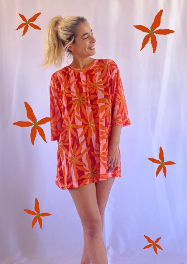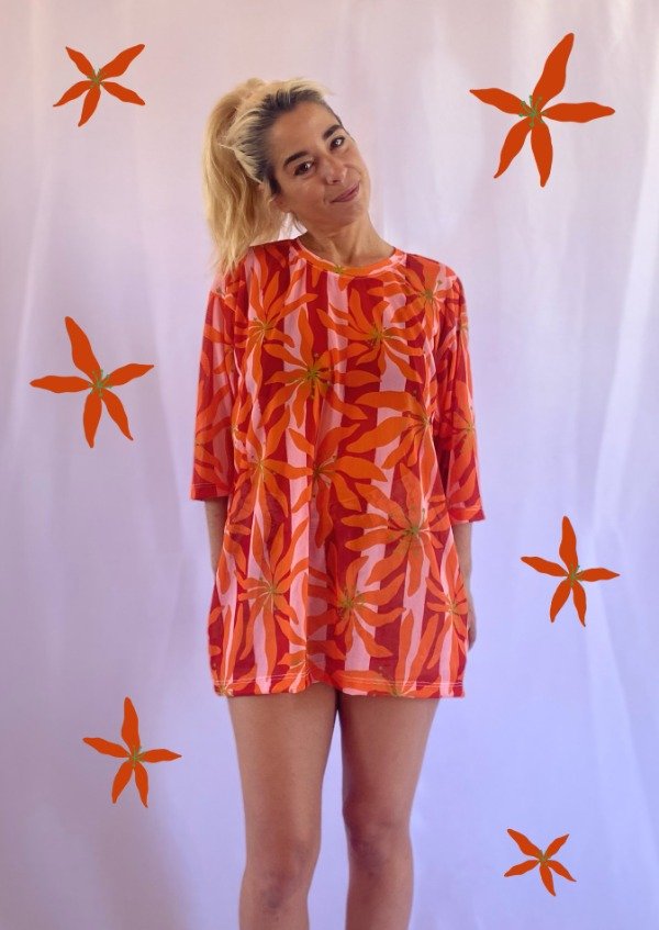 Está confeccionada en microtul 100% poliéster de altísima calidad, con nuestras estampas originales (sí, diseñadas por nosotras en Sur). La tela es suave, liviana y bien fresca, ideal para los días de calor o para sumar una capa liviana sin perder comodidad.
